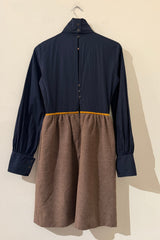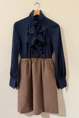 Mixed material dress by Fendi with beautiful brooch detail. Made of cotton, wool, suede leather. Perfect condition.