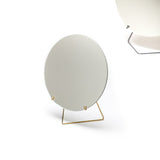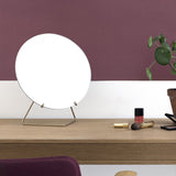 Der «Standing Mirror» von Moebe aus Dänemark ist ein rahmenloser freistehender Spiegel, der von einer leichten Metalldraht-Form gehalten wird. Die kontrastierenden Eigenschaften der beiden Komponenten - massiv und durchlässig, leicht und schwer - geben dem Design seinen Charakter. Grösse: 30 cm Durchmesser, ausgeführt in Messing.