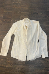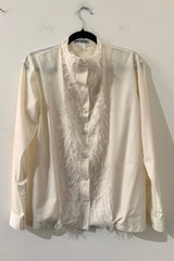 Creme white colored Issey Miyake blouse with interesting detail on the lapel.